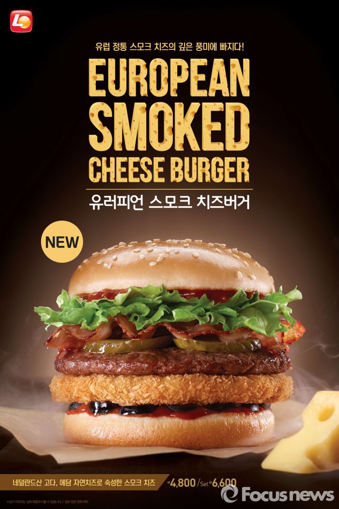 신제품 유러피언 스모크 치즈버거는 네덜란드를 대표하는 치즈인 고다, 에담 치즈를 혼합해 자연 숙성한 스모크 치즈 패티와 베이컨을 넣어 만들었다. 치즈비프에 치즈패티로 버거의 풍부함을 살렸다는 설명이다.