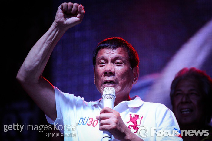 필리핀 헌법에 따르면 대통령 임기는 6년이다. 1965년부터 1986년까지 20년 넘게 대통령 자리를 지킨 독재자 페르니난드 마르코스의 잔재를 털어버리기 위해 필리핀은 대통령 연임을 절대 금지한다.22년간 필리핀 남부 민다나오섬 다바오 시장을 맡아온 로드리고 두테르테가 필리핀 대선에서 승리를 확정했다고 영국 BBC가 9일(현지시간) 보도했다. 온갖 막말과 기행을 일삼아 필리핀 트럼프로 불린 두테르테가 당선된 주요인은 현 대통령 일가의 주요 산업 장악이었다. (Photo by Dondi Tawatao/Getty Images)2016.05.10 ⓒ게티이미지/이매진스 두테르테 당선자가 대선을 앞두고 지난 7일(현지시간) 마지막 유세를 벌였다. 이 자리에서 두테르테는 범죄자를 전부 마닐라 만에 빠뜨려 물고기를 살찌우겠다고 발언했다. (Photo by Dondi Tawatao/Getty Images)2016.05.10 ⓒ게티이미지/이매진스