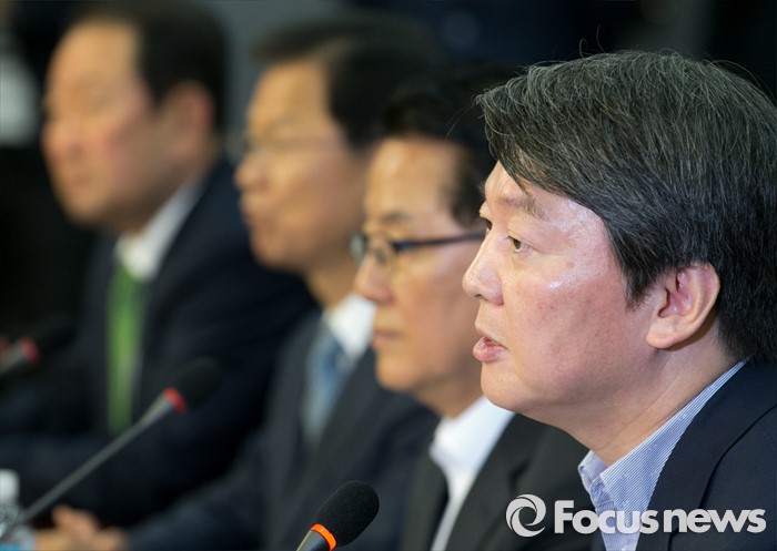 (서울=포커스뉴스) 안철수(오른쪽 첫번째) 국민의당 상임공동대표가 10일 오전 서울 여의도 국회 의원회관에서 열린 당선자 총회 및 3차 집중워크숍에 참석해 모두발언을 하고 있다.