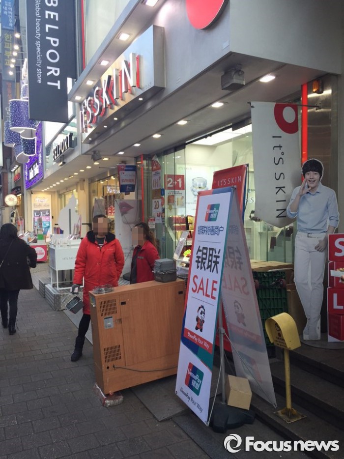 잇츠스킨 관계자는 "중국 시장 뿐 아니라 포스트 차이나 시대를 대비하기 위한 해외 진출 전략으로 매출 확장에 힘쓸 것"이라며 "또한 올 하반기 달팽이 크림의 2세대 제품을 출시하고, 유통채널별 전용 PB 상품을 개발 하는 등 하반기 제품 전략도 함께 진행해 나갈 계획이다"고 말했다.(서울=포커스뉴스) 5일 잇츠스킨 명동점 매장 입구에 중국인 관광객 '유커'들을 위한 안내 입간판이 설치돼 있다. 2016.02.05