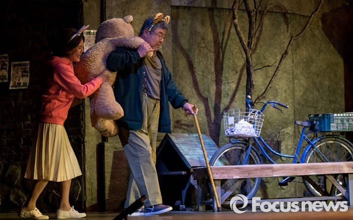 (서울=포커스뉴스) 10일 오후 서울 종로구 동숭아트센터에서 열린 연극 '장수상회' 프레스콜에 참석한 배우 백일섭, 김지숙이 극의 주요장면을 시연하고 있다.