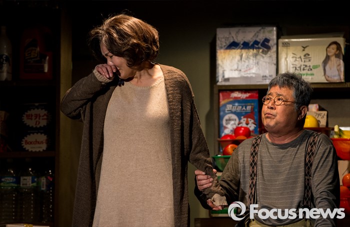 (서울=포커스뉴스) 10일 오후 서울 종로구 동숭아트센터에서 열린 연극 '장수상회' 프레스콜에 참석한 배우 백일섭, 김지숙이 극의 주요장면을 시연하고 있다.