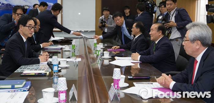 (세종=포커스뉴스) 이준식(왼쪽) 사회부총리 겸 교육부장관이 10일 오후 세종시 정부세종청사 교육부 중회의실에서 열린 전국시도교육감협의회 회장단 간담회에 참석해 인사말을 하고 있다.