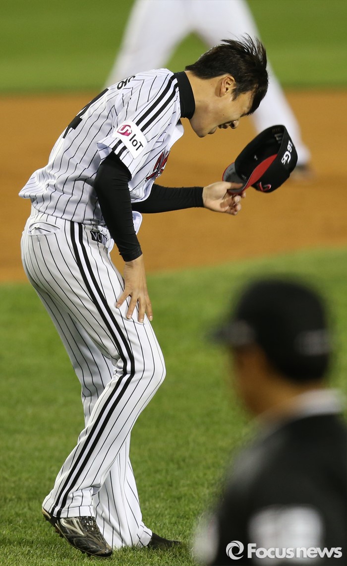 | △ 홈런 맞고 실망한 LG 윤지웅 |