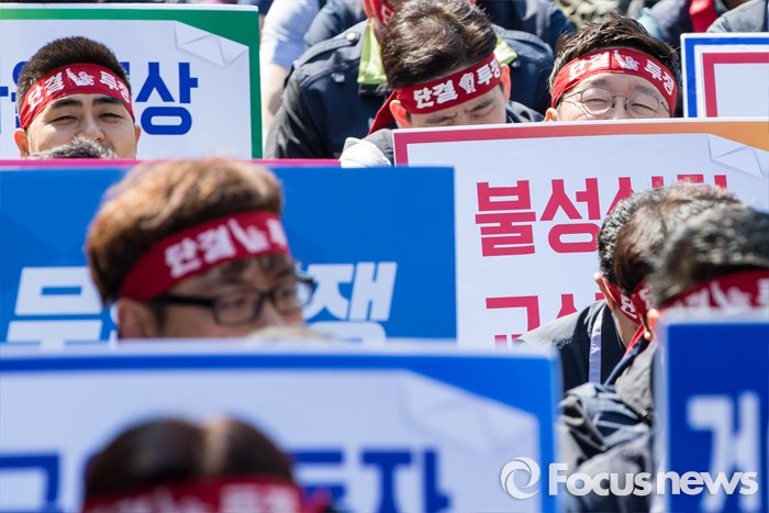 | △ 손팻말 든 노조원들 |