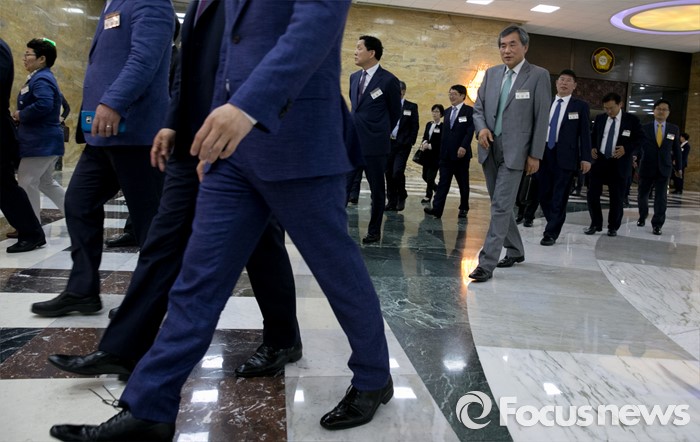△ 기념촬영 위해 이동하는 20대 국회 초선 의원들