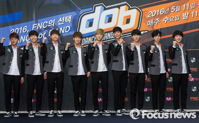 (서울=포커스뉴스) 11일 오후 서울 마포구 스탠포드 호텔에서 열린 Mnet 'Dance or Band' 제작발표회에 참석한 Fnc 엔터테인먼트 소속 댄스팀이 포토타임을 갖고 있다.
