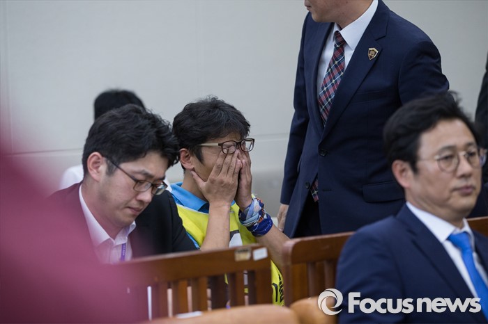 (서울=포커스뉴스) 11일 오후 서울 여의도 국회에서 가습기 살균제 관련 현안보고 등을 위해 열린 환경노동위원회 전체회의에 참석한 안성우 가습기 살균제 피해 유가족 대표가 회의를 방청하고 있다.