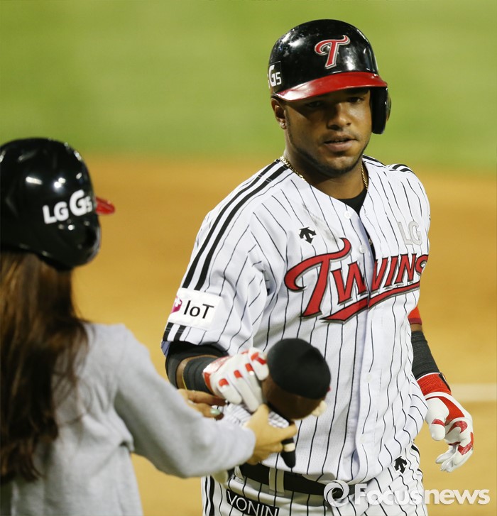 (서울=포커스뉴스) 11일 서울 잠실구장에서 열린 2016 프로야구 삼성-LG 경기 5회말 LG 히메네스가 시즌 10호 좌월 솔로 홈런을 치고 홈인하고 있다.