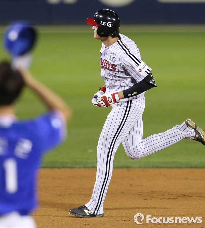 (서울=포커스뉴스) 11일 서울 잠실구장에서 열린 2016 프로야구 삼성-LG 경기 6회말 1사 1,3루에서 LG 이형종이 좌월 3점 홈런을 치고 그라운드를 돌고 있다.