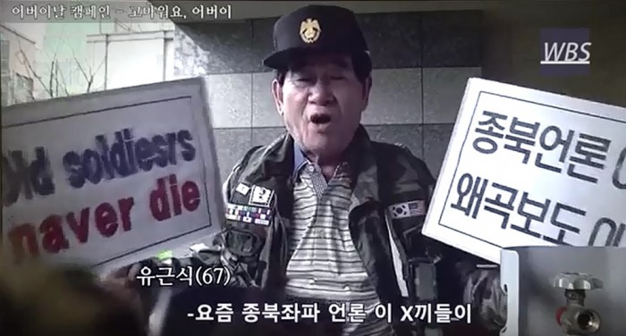 영상에는 어버이연합 회원으로 묘사된 60대 남성이 군복을 입은채 일당 2만원을 받고 가스통 시위에 나서는 장면 등이 담겨 있다.