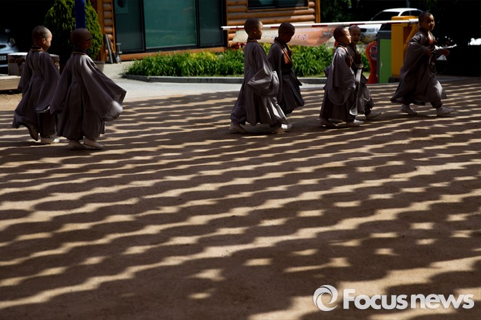 (서울=포커스뉴스) 석가탄신일을 이틀 앞둔 12일 오전 서울 종로구 조계사에서 동자승들이 경내를 둘러보고 있다.