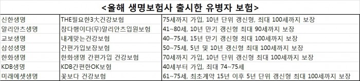 한 보험사 관계자는 "생보사는 대면과 비대면 채널을 혼합하는 형태로 유병자 보험 시장을 재편할 것"이라고 말했다.올해 출시된 생명보험사의 유병자 보험.