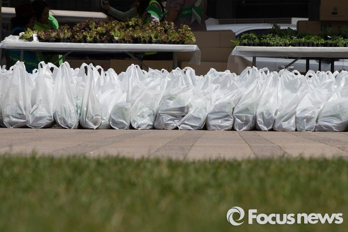 (서울=포커스뉴스) 12일 오후 서울시청 광장에서 열린 채소 모종 나눔행사에서 모종이 담긴 비닐봉지가 바닥에 놓여져 있다.