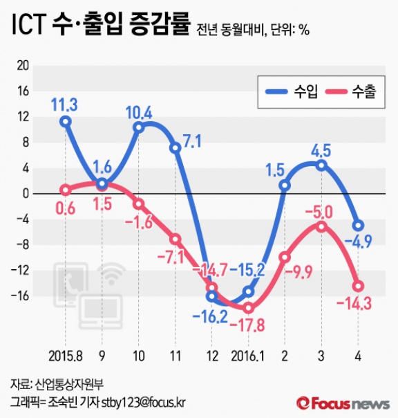 | △ [그래픽] ICT 수·출입 증감률 |