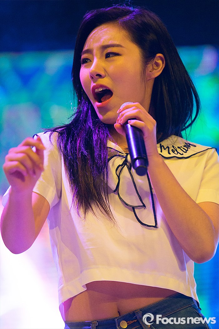 (서울=포커스뉴스) 12일 오후 서울 광진구 건국대학교 대운동장에서 열린 '2016 건국대학교 대동제'에서 걸그룹 마마무 멤버 휘인이 무대를 선보이고 있다.