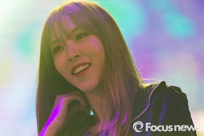 (서울=포커스뉴스) 12일 오후 서울 광진구 건국대학교 대운동장에서 열린 '2016 건국대학교 대동제'에서 걸그룹 마마무 멤버 문별이 미소를 짓고 있다.