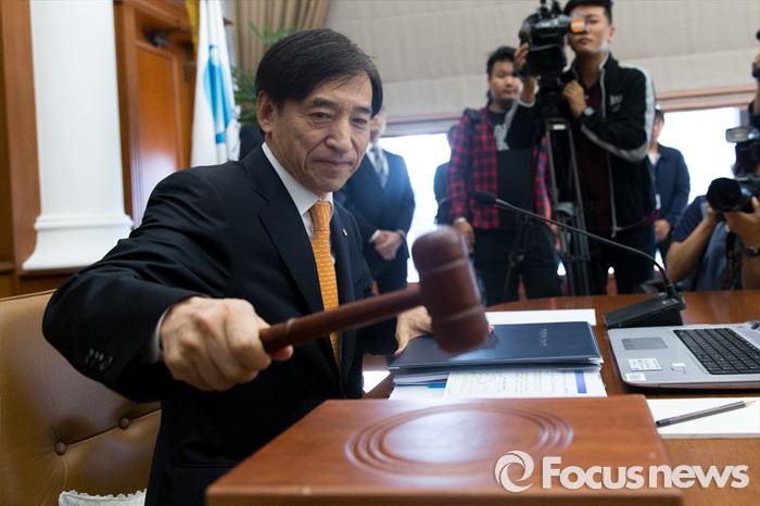 (서울=포커스뉴스) 이주열 한국은행 총재가 13일 오전 서울 중구 남대문로 한국은행에서 열린 금융통화위원회에 참석해 회의 시작을 기다리고 있다.