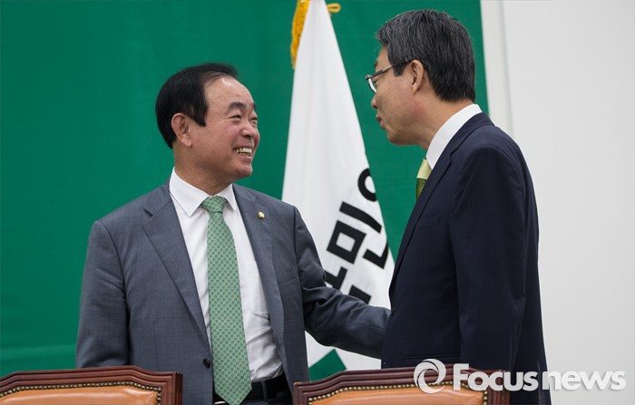 (서울=포커스뉴스) 김성식(오른쪽) 국민의당 정책위의장과 장병완 의원이 13일 오전 서울 여의도 국회에서 열린 최고위원회의에 참석해 대화를 나누고 있다.
