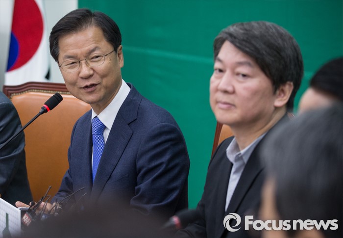 (서울=포커스뉴스) 천정배(왼쪽) 국민의당 상임공동대표가 13일 오전 서울 여의도 국회에서 열린 최고위원회의에 참석해 모두발언을 하고 있다. 오른쪽은 안철수 상임공동대표.