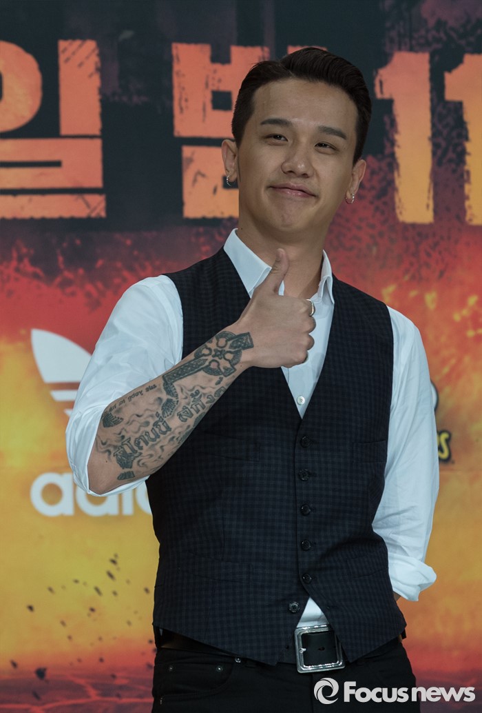 (서울=포커스뉴스) 13일 오전 서울 영등포구 타임스퀘어 아모리스홀에서 열린 Mnet '쇼미더머니5' 제작발표회에 참석한 작곡가 쿠시가 포토타임을 갖고 있다.