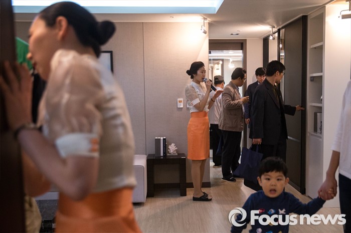 (서울=포커스뉴스) 이달 6만 8천여 가구라는 물량이 쏟아져 5월 분양전쟁이 예상되는 가운데 서울 용산구 효창동 KCC 스위첸 견본주택이 방문한 시민들로 붐비고 있다.