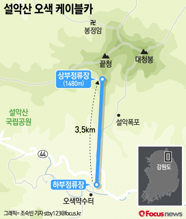 (서울=포커스뉴스) 강원도는 13일 국립공원 최초의 내륙형 삭도 시범사업으로 추진되는 설악산 오색케이블카 사업을 환경영향평가 등 행정 절차가 마무리되면 곧바로 착공한다고 밝혔다.