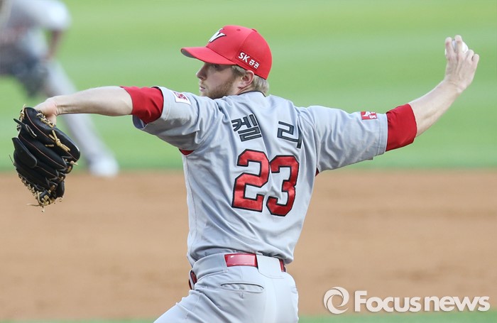 투구하는 SK 선발투수 켈리