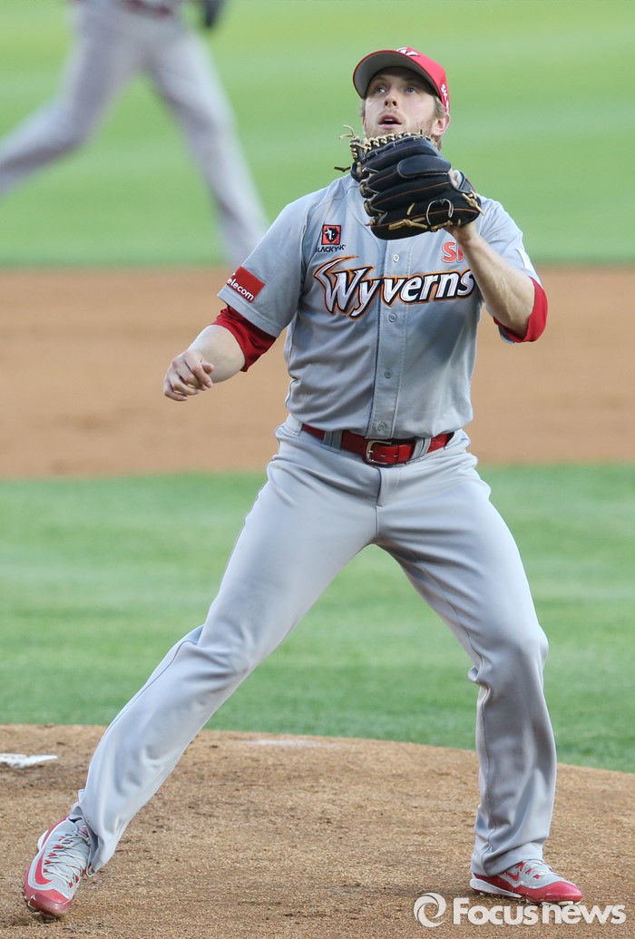 수비하는 SK 투수 켈리