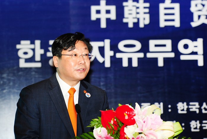 (서울=포커스뉴스) 주형환 산업통상자원부 장관이 13일 중국 크라운플라자호텔 회의실에서 후허핑(胡和平) 섬서성장과 한중 양국 대표단 및 현지기업인 등 200여명이 참석한 가운데 열린 한-섬서성 경제협력협의회 개막식에 참석해, 기조연설을 하고 있다. <사진제공=산업통상자원부>