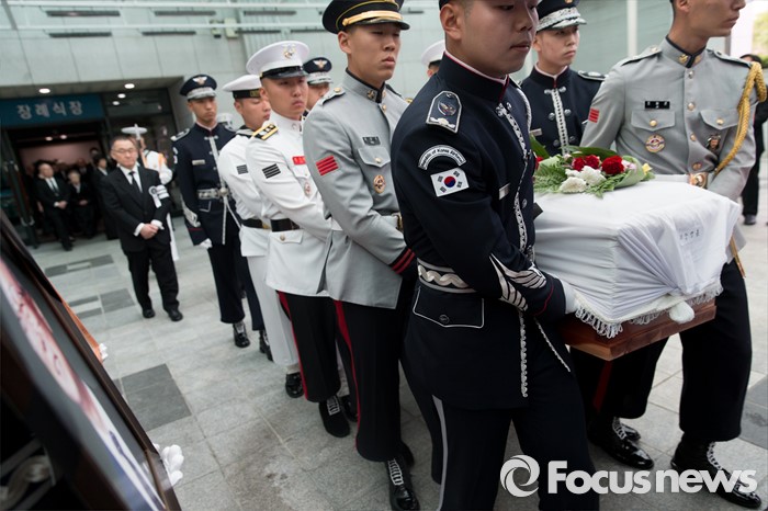 (서울=포커스뉴스) 14일 오전 서울 송파구 아산병원 장례식장에서 강영훈 전 국무총리의 발인식이 엄수되고 있다.