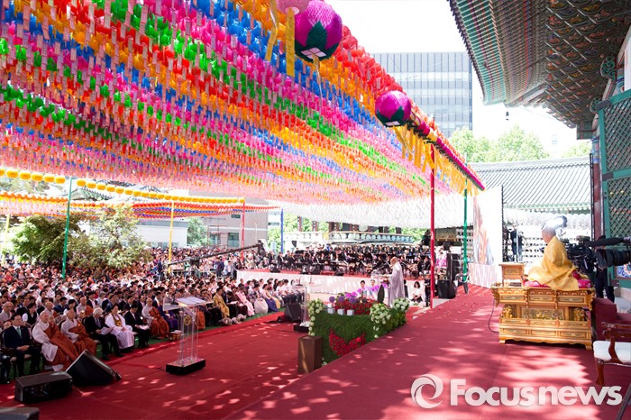 (서울=포커스뉴스) 14일 오전 서울 종로구 조계사 대웅전에서 불기 2560년 부처님 오신날 봉축 법요식이 진행되고 있다.