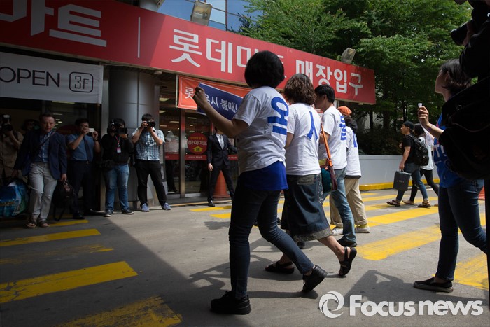 염 사무총장은 "롯데마트 측은 언론과 국민을 향해서 옥시 제품을 취급하지 않겠다고 공언했지만 '옥시 사태'가 일어난 뒤에도 같은 제품들이 버젓이 판매 진열대에 위치해 있다"며 "이는 '옥시 사태'에 대한 국민정서를 조롱하는 것"이라고 비판했다.