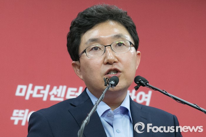 (서울=포커스뉴스) 새누리당 혁신위원장으로 임명된 김용태 의원이 15일 오후 서울 여의도 당사에서 원내지도부와 함께 기자회견을 하고 있다.