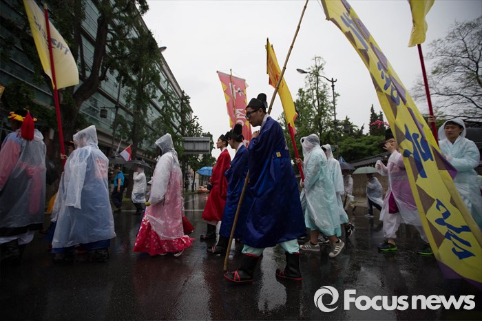 (서울=포커스뉴스) 세종대왕 탄신 619주년인 15일 오후 서울 종로구 경복궁 일대에서 세종대왕 어가행렬이 재현되고 있다.
