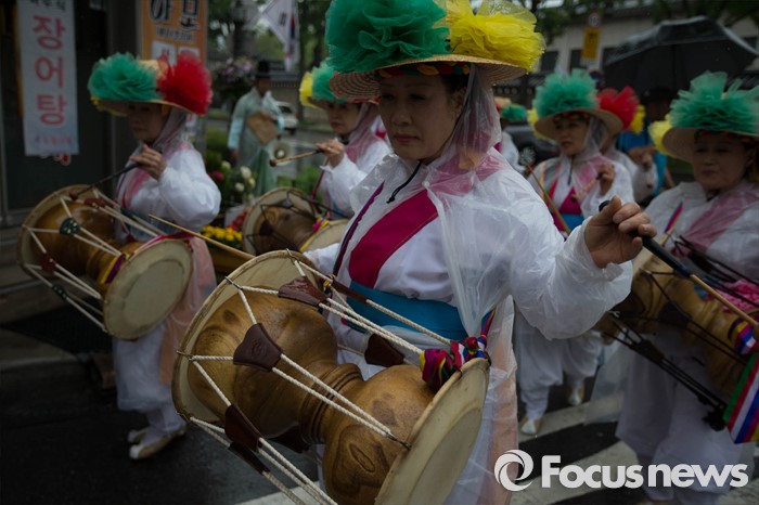 (서울=포커스뉴스) 세종대왕 탄신 619주년인 15일 오후 서울 종로구 통인시장 일대에서 세종대왕 어가행렬이 재현되고 있다.