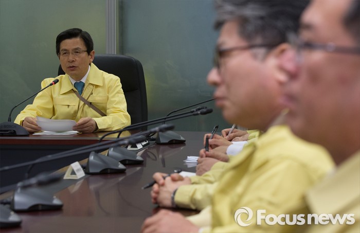 (세종=포커스뉴스) 황교안 국무총리가 16일 오후 세종시 정부세종청사 위기관리종합상황실에서 민방위의 날을 맞아 실시된 제401차 민방공 대피훈련에 참가해 국민안전처와 영상회의를 하고 있다.