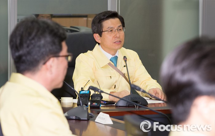 (세종=포커스뉴스) 황교안 국무총리가 16일 오후 세종시 정부세종청사 위기관리종합상황실에서 민방위의 날을 맞아 실시된 제401차 민방공 대피훈련에 참가해 국민안전처와 영상회의를 하고 있다.