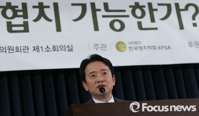 (서울=포커스뉴스) 16일 오후 서울 여의도 국회 의원회관에서 열린 '20대 국회, 협치 가능한가' 토론회에 참석한 남경필 경기도지사가 인사말을 하고 있다.