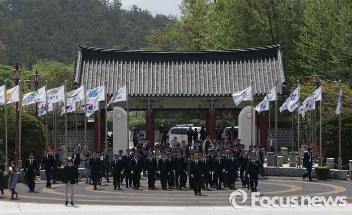호남 지지율을 두고 국민의당과 치열한 주도권 경쟁을 벌이고 있는 더민주가 이날 행사를 기점으로 지지율을 회복할 수 있을지 귀추가 주목된다.김종인 더불어민주당 비대위 대표가 25일 오전 광주 북구 국립 5·18민주묘지를 방문해 20대 총선 당선인 및 광주·전남지역 낙선 인사들과 참배를 위해 이동하고 있다. 2016.04.25 박동욱 기자