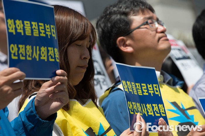 (서울=포커스뉴스) 17일 오전 서울 종로구 세종문화회관 앞에서 환경 및 시민단체와 가습기 살균제 피해자들이 가습기 살균제 사고에 대한 근본적 대책마련을 촉구하며 기자회견을 하고 있다.