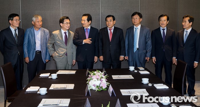 (서울=포커스뉴스) 17일 오후 서울 중구 플라자호텔에서 열린 경제사회발전 노사정위원회 역대 상임위원 간담회에서 초대 상임위원을 맡았던 정세균(왼쪽 네번재 부터) 더불어민주당 의원,김대환 위원장을 비롯한 참석자들이 기념촬영을 하고 있다.