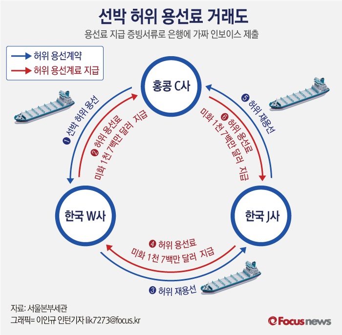 (서울=포커스뉴스) 관세청 서울본부세관은 해외 선박유 공급업체 등에 대한 외환 특별단속을 실시한 결과, 선박 용선료를 허위 계약하는 등 지능적인 불법외환거래를 해온 W사를 적발했다고 밝혔다.