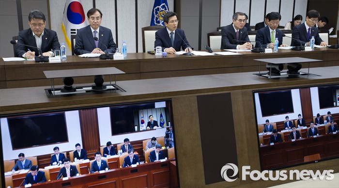 (세종=포커스뉴스) 황교안 국무총리가 17일 오후 세종시 정부세종청사 1동 대회의실에서 서울-세종 영상회의로 열린 국가정책조정회의에 참석해 회의를 주재하고 있다.