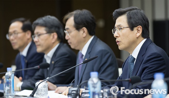 (세종=포커스뉴스) 황교안(오른쪽) 국무총리가 17일 오후 세종시 정부세종청사 1동 대회의실에서 서울-세종 영상회의로 열린 국가정책조정회의에 참석해 회의를 주재하고 있다.