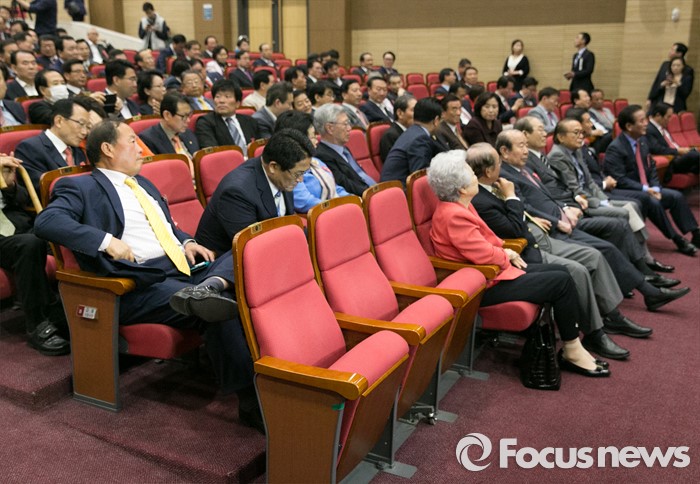 (서울=포커스뉴스) 17일 오후 서울 여의도 국회 의원회관에서 비대위 구성안 및 당헌 당규개정안 등 현안 처리를 위해 예정된 4차 새누리당 전국위원회에 정진석 원내대표 등 지도부의 빈 자리가 보이고 있다. 이날 전국위원회의는 앞서 예정된 상임전국위원회를 개최해 당헌개정안 등을 심의할 예정이었지만, 친박계 의원들이 대거 불참해 참석자 미달로 회의가 열리지 못 했다.
