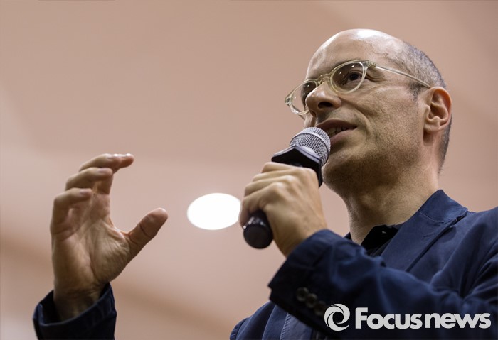 16일 오후 서울 종로구 서울예술고등학교에 '프랑스 천재 작가' 베르나르 베르베르가 등장했다. 400여명 앞에 모습을 드러낸 베르베르는 시각, 청각, 촉각 훈련법을 알려주며 청중을 명상의 세계로 이끌었다. 베르베르가 '명상'으로 강연의 포문을 연 것은 강연 주제인 '예술적 지능'의 기반이 되는 것이 바로 자연에 대한 관찰이기 때문이다.