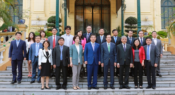 (서울=포커스뉴스) 이기권 고용노동부장관이 베트남 정부 초청으로 17일 베트남을 방문, 따오 응옥 쭝(Dao Ngoc Dung) 베트남 노동보훈사회부 장관을 만나 고용허가제 MOU를 체결하고 기념촬영을 하고 있다. <사진제공=고용노동부>