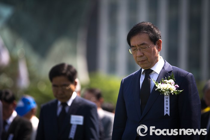 (서울=포커스뉴스) 18일 오전 서울 중구 서울시청 앞 광장에서 열린 5.18 민주화운동 기념식에 박원순 서울시장이 참석해 있다.
