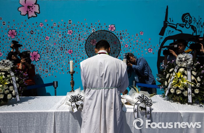 | △ 헌화 후 묵념하는 시민 |